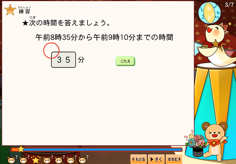 それから、アニメーションが子どもを退屈させないので良いですよね。正答が出るときに、キャラクターがコメントを言うじゃないですか。あれがくだらないんですけど、でもそうやってリアクションを毎回取ってもらうのは、学校ではなかなかできないことなので、そういったアクションによって、自己肯定感を少しアップさせてくれていると思います。そういうキャラクターのコメントで一旦リセットされるので、長いレクチャーでも、集中力が途切れることなく学習できています。