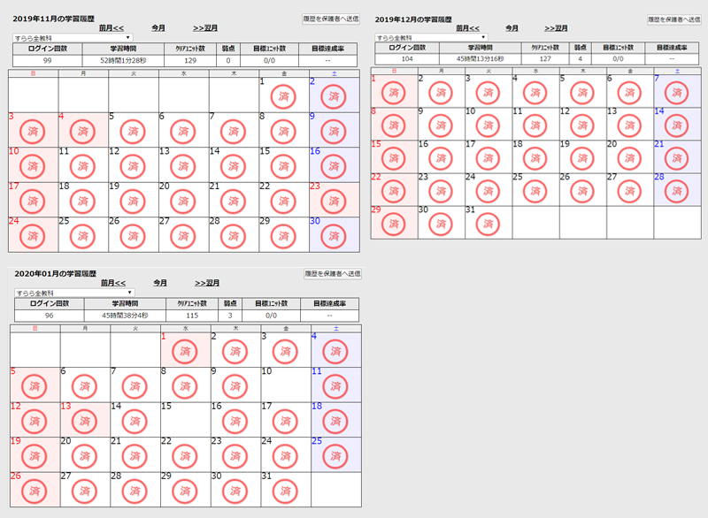 お父さまのそういった話やサポートが、お子さまの学習を習慣化させているのかもしれないですね!実際に学習履歴を見てみても、毎日ログインして、毎月100ユニット以上もクリアされているので、素晴らしいなと思っておりました。