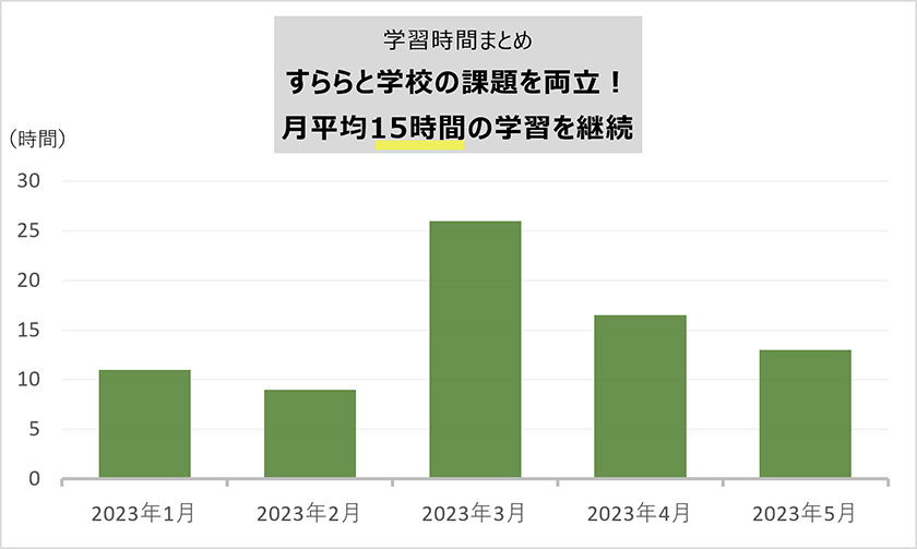 お二人とも学校の課題と両立し、月平均10時間以上の学習をクリアしています。
