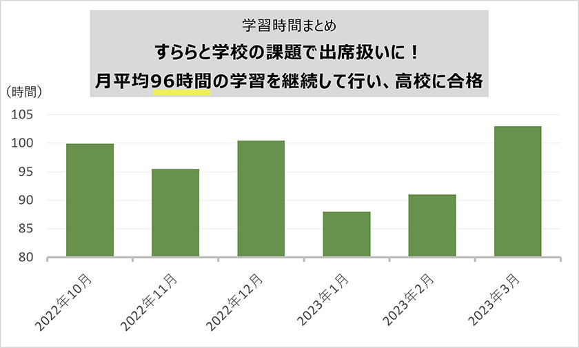 - 【中3・不登校】月平均96時間学習!出席扱い認定!対人の不安ゼロな環境がやる気を促進、高校進学へ