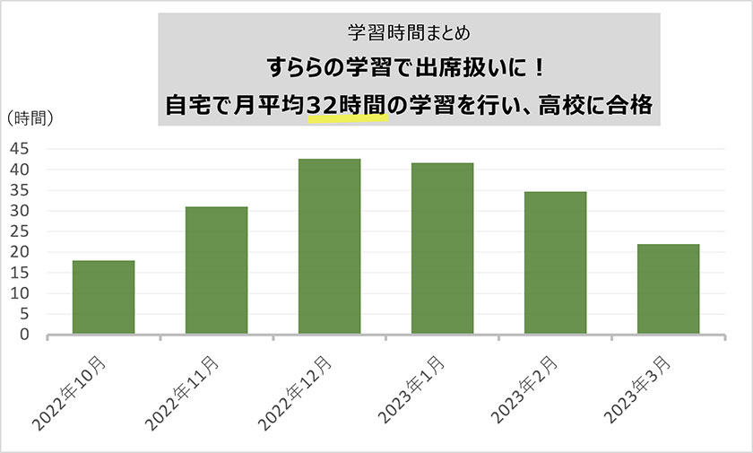月平均32時間以上の学習をクリアしており、出席扱いも認定されています。